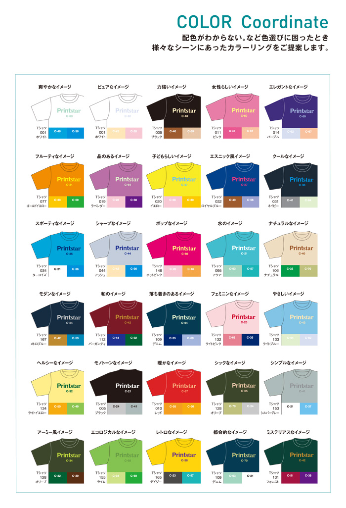 | ■カッティング転写プリントの場合は下記のシートカラーをご参照ください。 | |||