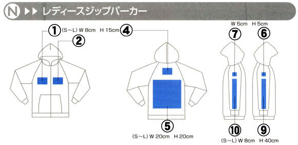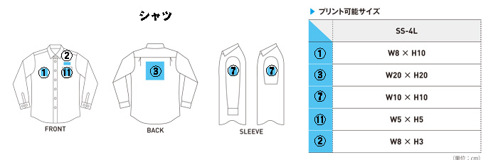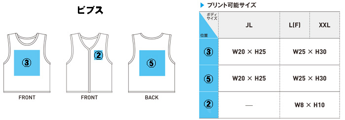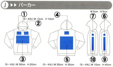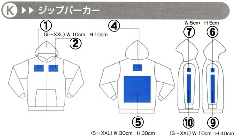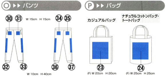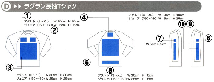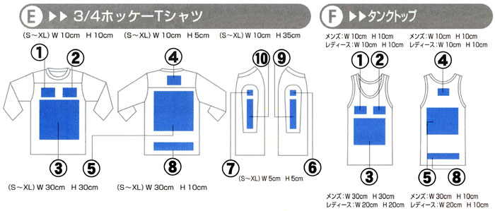 | プリント位置については、だいたい番号の付いているあたりにプリントするようにし | ||